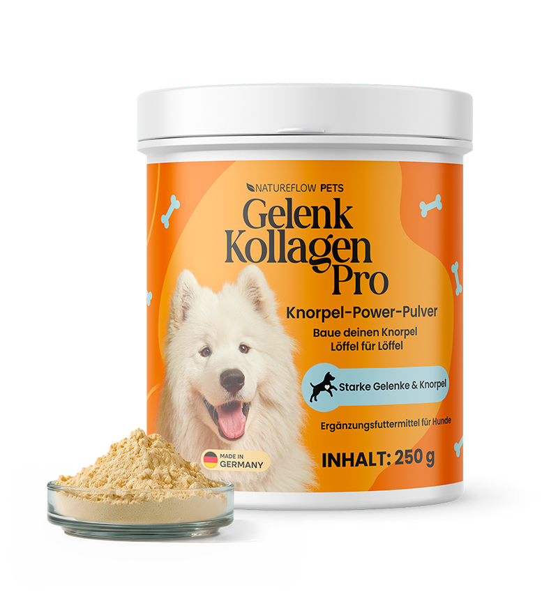 Hydrolysiertes Kollagen ist bereits aufgespalten und dadurch besonders gut verwertbar. Es liefert essenzielle Bausteine für Knorpel, Gelenke und Bindegewebe und unterstützt so die natürliche Beweglichkeit deines Hundes.