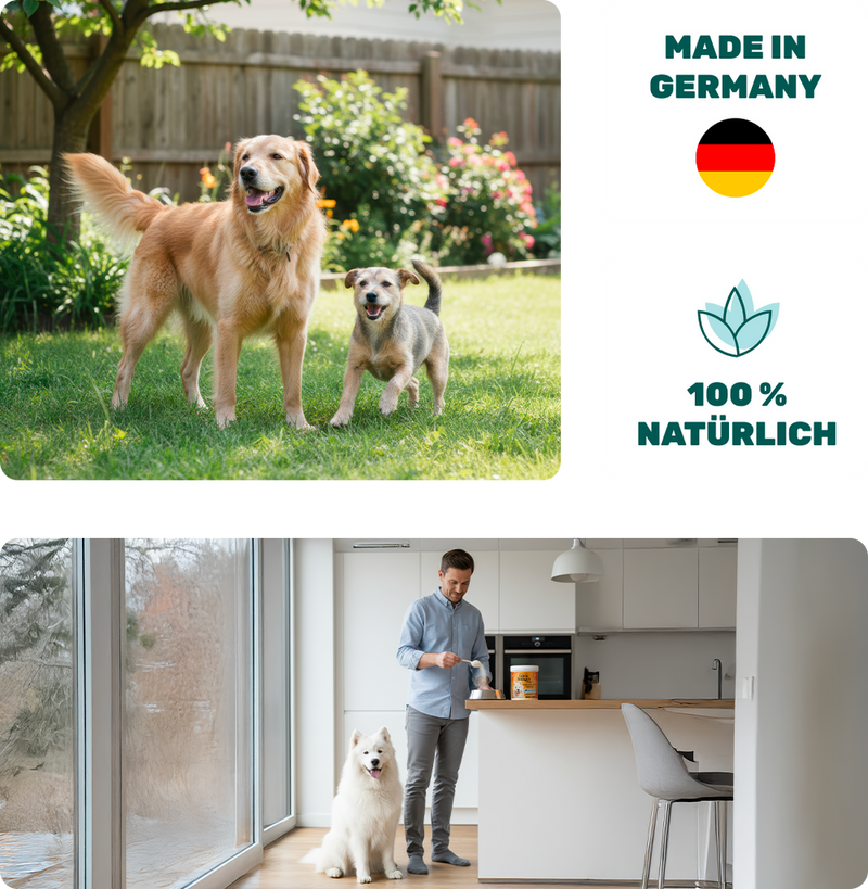 Ich bin total begeistert von dem Kollagenpulver! Mein Hund frisst es ohne Probleme, da es sich super leicht unters Futter mischen lässt. Nach einigen Wochen habe ich gemerkt, dass er sich viel leichter bewegt und insgesamt vitaler wirkt. Besonders freut mich, dass es hydrolysiertes Kollagen enthält – so weiß ich, dass sein Körper es richtig gut aufnehmen kann. Auch die Kombination mit Kolostrum und Boswellia finde ich klasse, weil ich meinem Hund damit rundum etwas Gutes tue. Für mich ein echtes Premiumprodukt, das ich jedem Hundebesitzer empfehlen kann, der Gelenke und Beweglichkeit langfristig unterstützen möchte!